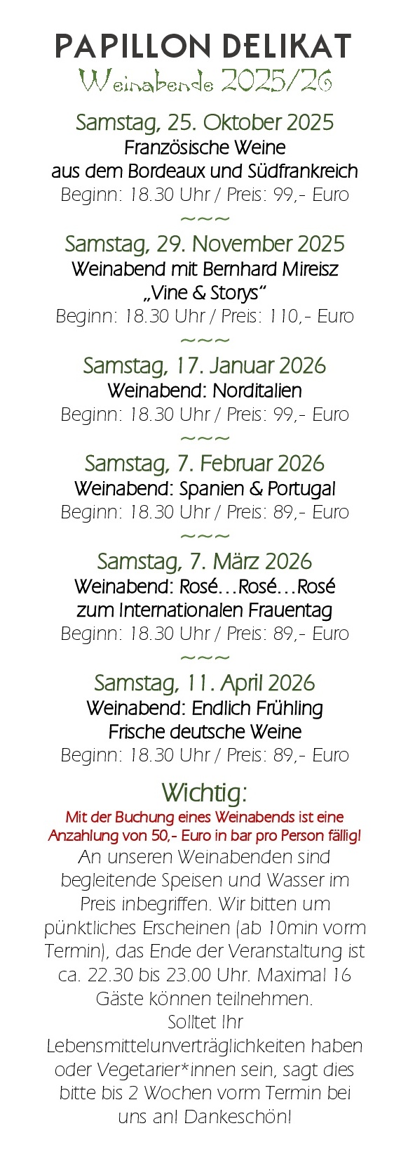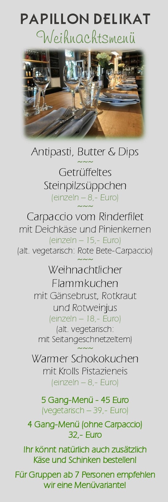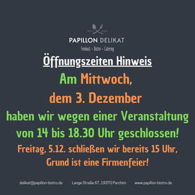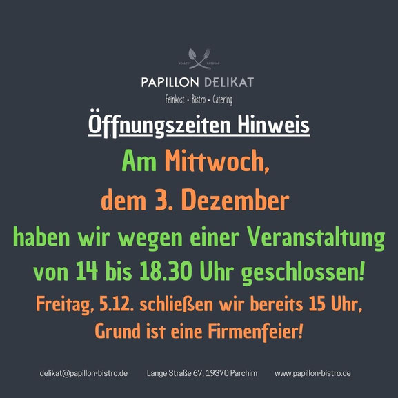 Ihr Lieben, Ihr seid auf der Homepage des Papillon Delikat in Parchim. Schaut Euch um und macht Euch ein Bild von unserer Angebotspalette und wenn Euch gefällt, was Ihr seht, dann kommt gern vorbei!
